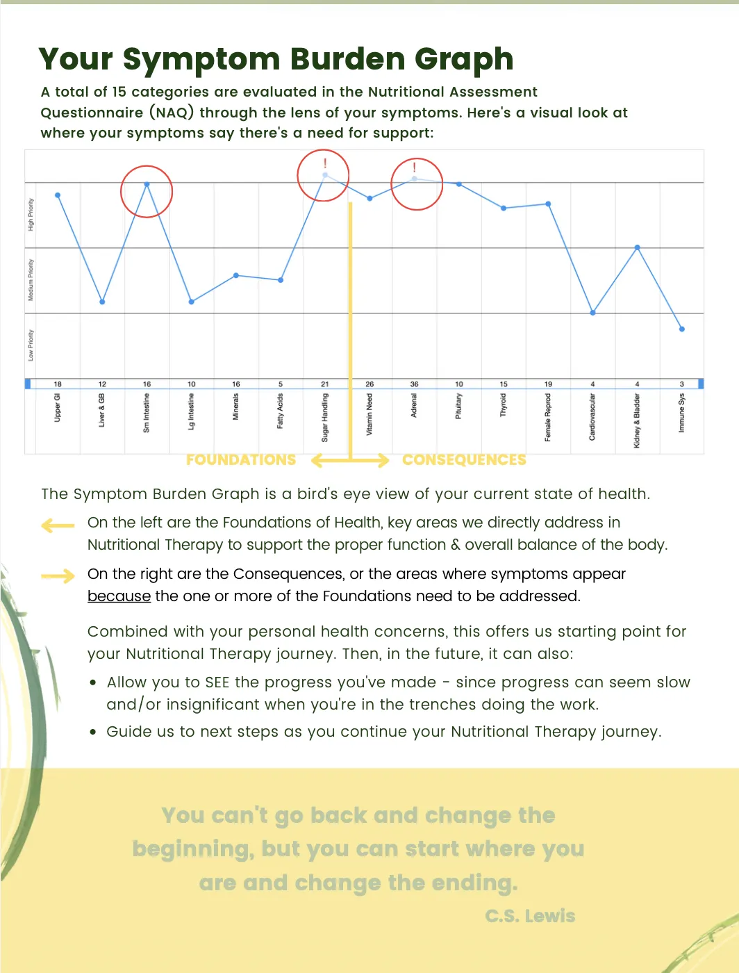 This report highlights your top health priorities, based on your responses, and helps translate what your symptoms may be saying about where your body needs support.